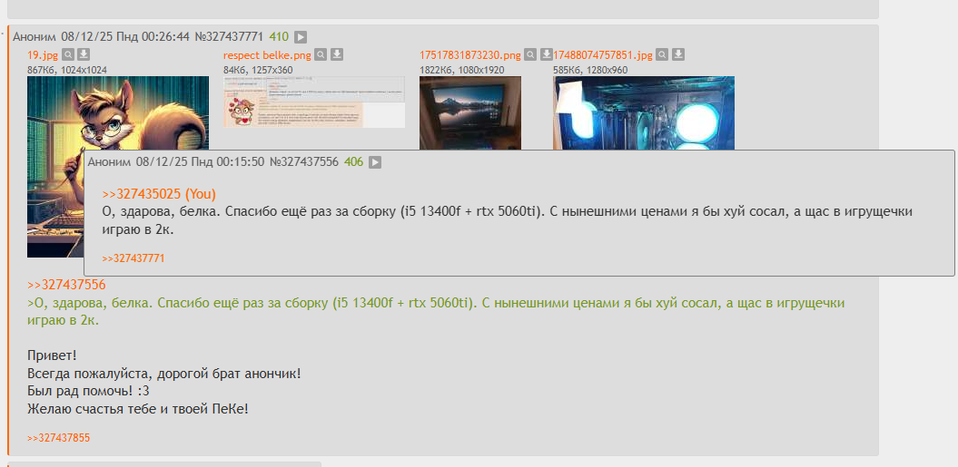 2007 УВЕРЕННЫЙ ПК БОЯРИН. АДЕПТ МЕДИУМ КВАЛИТИ СЕТТИНГС $$$ 2010 ВСЕ ЕЩЁ УВЕРЕННЫЙ ПК БОЯРИН, ОБНОВЛЯЕШЬ ЖЕЛЕЗО ДО БАЗОВОГО МИНИМУМА В РАМКАХ СВОЕГО КОРПУСА. АДЕПТ ПРЕД ХАЙ КВАЛИТИ СЕТТИНГС $$$ 2013 ПРЕИСПОЛНЕННЫЙ ПЕЧЬЮ ПОД СТОЛОМ И КАБЕЛЬНЫМ СЕРПЕНТАРИЕМ, ВКАТЫВАЕШЬСЯ В МИР ИГРОВЫХ НОУТБУКОВ $ ГЛОРИУС ЭЙСЕР В3 ЮЗЕР. НАТИВНЫЙ ХАЙ КВАЛИТИ - ТВОЁ ВТОРОЕ ИМЯ $ ЛИТТЛ ДАВНГРЕЙД СЕТТИНГС $ КУПИЛ ГЕЙМПАД ДЛЯ ВАНЭСА, ИГРАЕШЬ ПО ПРОВОДУ $ ЛИТТЛ ДАВНГРЕЙД СЕТТИНГС $ КУПИЛ ГЕЙМПАД ДЛЯ ВАНЭСА СЕРИЕС ЭСА, ИГРАЕШЬ БЕЗ ПРОВОДА $ ЛИТТЛ… ну вы поняли $ НА ДИВАНЕ ПЕРЕД ТЕЛИКОМ ИГРАТЬ - ПРОСТО ПЕСНЯ. ПОЯСНИЦА КИДАЕТ РЕСПЕКТЫ. В ЛЮБОЙ МОМЕНТ МОЖЕШЬ ОТКРЫТЬ ТАБЛИЧКУ ЭКСЕЛЯ, КОНСОЛЕЮЗЕРЫ КУСАЮТ ГУБЫ $ 2019 ЛОУ КВАЛИТИ ЗАШКВАРОЮЗЕР. ПОЗАБЫВ О ТОМ, ЧТО ЖЕЛЕЗО ГРЕЕТСЯ, А ТЕРМОИНТЕРФЕЙСЫ ТЕРЯЮТ СВОИ ХАРАКТЕРИСТИКИ, СЖИГАЕШЬ МОСТЫ $ РЕМОНТИРУЕШЬ, ПОПУТНО МЕНЯЯ НА МАТЬ С БОЛЕЕ ПРОИЗВОДИТЕЛЬНЫМ ВИДЕОЯДРОМ. ДОВОДИШЬ ОБЪЕМ ОПЕРАТИВНОЙ ПАМЯТИ ДО МАКСИМАЛЬНО ПЕРЕВАРИВАЕМОГО ПРОЦЕССОРОМ. ПОКУПАЕШЬ ОХЛАЖДАЮЩУЮ ПОДСТАВКУ, ТРАНСФОРМИРУЮЩУЮСЯ В ПЕРЕНОСКУ ДЛЯ НОУТА $ ГЛОРИУС МОБИЛЬНОДЕБИЛЬНЫЙ ЮЗЕР, ХОТЬ НА РЫБАЛКУ ЕХАЙ ДА ИГРАЙ В СИМУЛЯТОР РЫБОЛОВА, ТОЛЬКО С РЕАЛЬНЫМИ КОМАРАМИ $$ 2022 ВНЕЗАПНО ПРЕВРАЩАЕШЬСЯ В ПЕЩЕРНОГО ГРАФОНОДРОЧЕРА. ВИДИМО, ТЕБЯ УКУСИЛ ИНЦЕФАЛИТНЫЙ КОМАР. НАВЕРНОЕ, ПОЭТОМУ ОТ ПОТЭЙТО КВАЛИТИ У ТЕБЯ НЕ ТЕЧЕТ КРОВЬ ИЗ ГЛАЗ - ОНА КОНЧИЛАСЬ $ РРРЯЯЯ! СЮЖЕТ ВАЖЕН, НО Я ХОЧУ ГРАФОН! ХОЧУ ФПС СТОЛЬКО, СКОЛЬКО У МЕНЯ ИЗВИЛИН+60! 61 ФПС ХОЧУ!! И ХАЙ УЛЬТРА КВАЛИТИ СЕТТИНГС ХОЧУ!!! НА НОУТЕ $ ВЛЕТАЕШЬ В ОРАНЖЕВЫЙ МАГАЗИН И ЗАБИРАЕШЬ С ПОЛКИ САМЫЙ ТОПОВЫЙ ЛЭПТОПОВЫЙ $ ГЛОРИУС ЭЙСЕР НИТРО ЮЗЕР $ 30 80 - ТЕПЕРЬ НЕ ПРОСТО ЦИФРА КОТОРУЮ ТЫ ВИДИШЬ, ОБНОВЛЯЯ ЗЕЛЕНЫЙ ДРАЙВЕР. И НЕ ТВОЙ ВЕС/РОСТ. ЭТО ТО, ЧТО ТЫ БУДЕШЬ РАСКАЛИВАТЬ УЮТНЫМИ ВЕЧЕРАМИ $ МЯСО, МАТЮКИ И ГОЛЫЕ НАТИВНЫЕ ХАЙКВАЛИТИ СЕТТИНГС ТЫ ВИДИШЬ ВПЕРВЫЕ В 144ГЦ $ ФЛЯГА ОТЛЕТАЕТ НА АВИТО ВМЕСТЕ СО СТАРЫМ НОУТОМ В НЕИЗВЕСТНОМ НАПРАВЛЕНИИ $$$ ЗА СПИНОЙ ШЕПЧУТСЯ ПРО 4К ГЕЙМИНГ $ ЭТО ЖЕ В 4 РАЗА БОЛЬШЕ ТВОЕГО ЛЮБИМОГО ГРАФОНИЯ. ПОДРЫВАЕШЬСЯ В КРАСНЫЙ МАГАЗИН И ПОКУПАЕШЬ 4К УМНЫЙ ТЕЛЕВИЗОР С ДИАГОНАЛЬЮ ПЕНСИОННОГО ВОЗРАСТА $ ПОЗЖЕ ПОНИМАЕШЬ, ЧТО ТЕЛЕВИЗОР И ПРАВДА УМНЕЕ ТЕБЯ, ВЕДЬ ТВОЙ 4К ФПС ПАДАЕТ ДО ЗНАЧЕНИЙ, РАВНОГО КОЛИЧЕСТВУ ТВОИХ ИЗВИЛИН. НЕДОВОЛЬНО УРЧИШЬ И ИГРАЕШЬСЯ С НАСТРОЙКАМИ $ ЗА СПИНОЙ ШЕПЧУТСЯ ПРО КАКОЙ-ТО АПСКЕЙЛИНГ $ ЙООООБАНА! ПРИКОЛЬНО! ИДЕШЬ В КОСМЕТОЛОГИЮ ЧТО БЫ СВЕСТИ С ГРУДИ СЛОВО «Native» В ТВОЕМ ЖИЗНЕННОМ КРЕДО $ МИМОДАВНГРЕЙД СЕТТИНГС $ ПОПАДАЮТСЯ РОЛИКИ ПРО СФФ КОМПОНЕНТЫ И МАЛОЛИТРАЖНЫЕ ПЕКИ. СМОТРИШЬ ЧИСТО ИЗ-ЗА СПОРТИВНОГО ИНТЕРЕСА. БЕЗ УДОВОЛЬСТВИЯ $ СССУКА ДАВНГРЕЙД СЕТТИНГС $ ИЩЕШЬ РОЛИКИ ПРО МАЛОЛИТРАЖНЫЕ СБОРКИ. ПРИ ПРОСМОТРЕ РЫДАЕШЬ, ВСПОМИНАЯ КАК АПГРЕЙДИЛ СВОЙ ПЕРДОКРЫЛ $ ПОНИМАЕШЬ, ЧТО ТВОЙ ЛЭПЧИК ПОСЛЕДНИЙ РАЗ ВЫЛЕЗАЛ НА УЛИЦУ НИКОГДА $ В ТЦ ПОГЛЯДЫВАЕШЬ НА ПОЛКУ С НОУТАМИ, НО ИНТЕРЕСУЕШЬСЯ У КОНСУЛЬТАНТОВ ПРО СФФ И ВСЯКИЕ ИЗВРАЩЕНИЯ, ТИПО ЛОУПРОФИЛЬ ВЕРТУШЕК И БАШЕНЬ $ УЗНАЕШЬ, ЧТО БУРЯТЫ ДЕЛАЮТ НА СВОИХ ЗАВОДАХ НОУНЕЙМ НОУТЫ С ЕБЕЙШИМИ ХАРАКТЕРИСТИКАМИ $ ПРОСМАТРИВАЯ ОЧЕРЕДНОЙ РОЛИК ITG GEAR, ВСПОМИНАЕШЬ СКОЛЬКО ЛЕТ ТЕРМОИНТЕРФЕЙСАМ НА ТВОЕМ УЖЕНЕНОВОМ НОУТБУКЕ $ ОХУЕВАЕШЬ ОТ ВСЕХ ПРИКОЛОВ ОБСЛУЖИВАНИЯ, ТИПО ВАКУУМНОЙ ОТКАЧКИ ТЕРМОПАСТЫ С КРИСТАЛА И РАЗМЕРНОЙ ЛИНЕЙКИ ТОЛЩИН ТЕРМОПРОКЛАДОК $ ПОПУТНО БИПОЛЯРИШЬ ОТ КАЧЕСТВА УСЛУГ РЕМОНТНИКОВ, НАСМОТРЕВШИСЬ ААНТ КОНТАКТ $ ДЕЛАЕШЬ ОБСЛУЖИВАНИЕ САМОСТОЯТЕЛЬНО. ТЕ