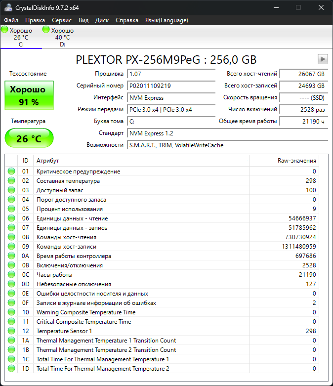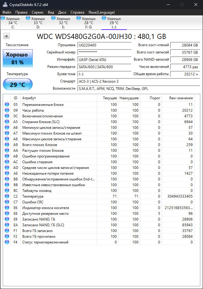 При вопросах о состоянии ссд по смарту переключай программу Crystal DiskINFO в десятичный режим! (ОП-пик №2)!