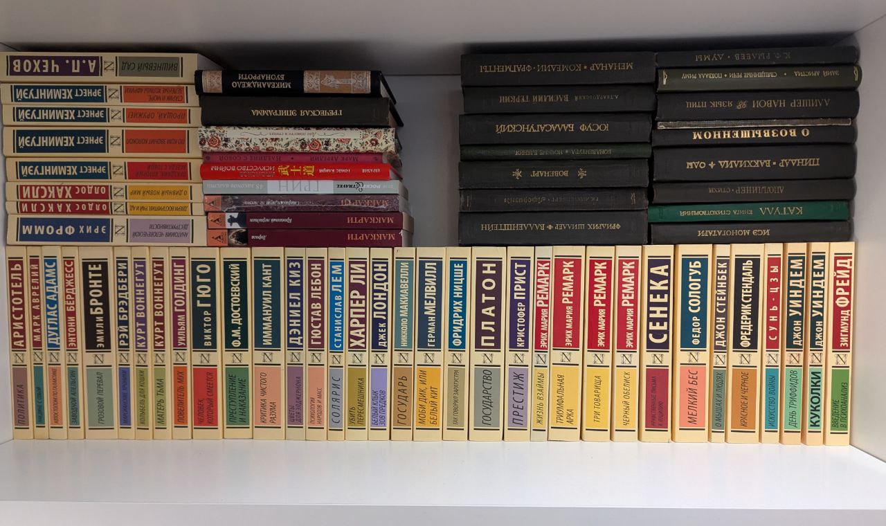 Эту полку надо навеное перебрать и продать/раздать, русскую классику АСТ я заменил Альпиной Прозой, остальное там покупалось потому что самое дешевое было в бумаге.