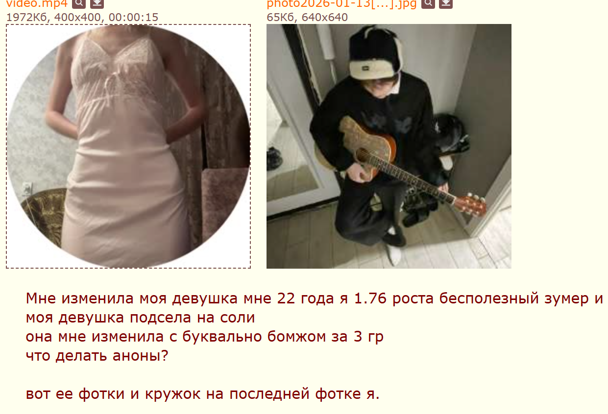 >>328729252 Да что ты, блять. Словно я не видел твой ТГ - канал. Всё это для меня не новости. Я знаю, что ты знаешь обо мне всё. От того, как я выгляжу до того, где живу. Как мне на это реагировать? Да мне плевать. С твоей стороны это некрасиво. Хотя, я и заслуживаю определённой доли высмеивания, если смотреть на то, как я себя показываю в интернете. Да смейтесь. Мне не жалко.