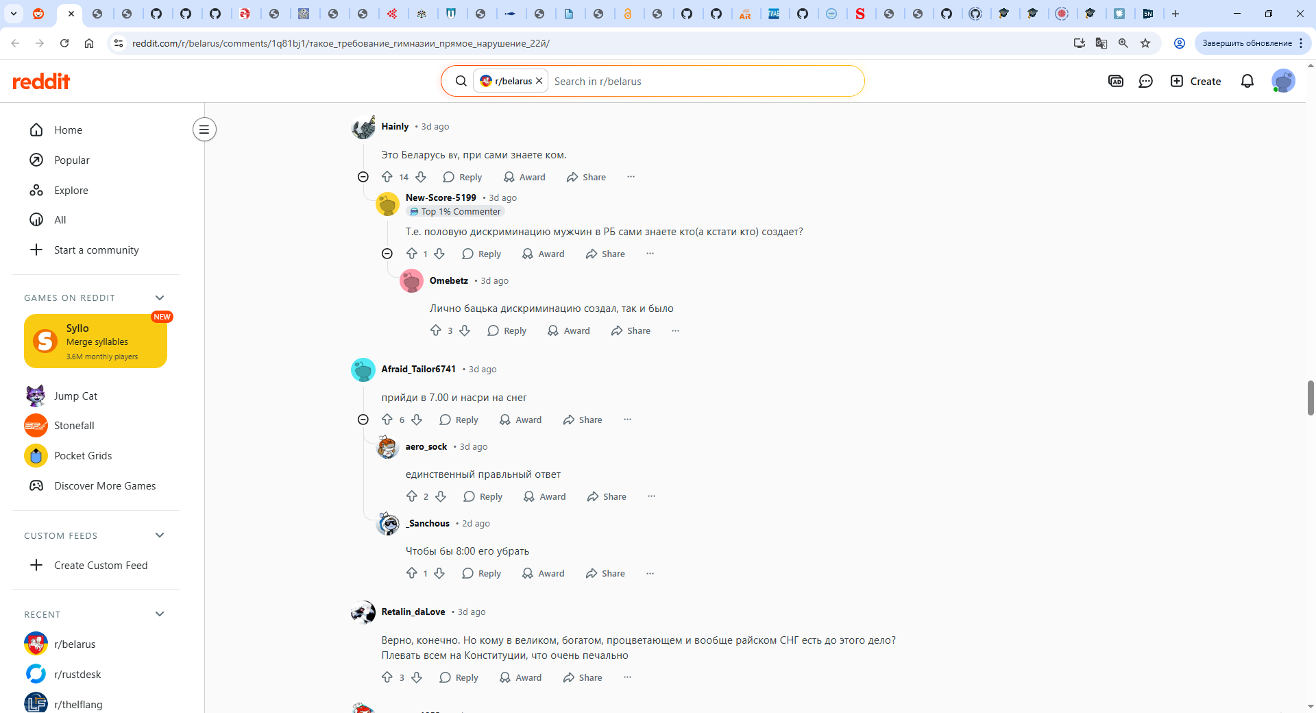> Наше постсовковое пространство очень непредсказуемо, может случиться что угодно. Неизвестно даже в какой форме и когда закончится гойда и какие у этого будут последствия. От этого напрямую зависит судьба Беларуси. чел даже я лютый обожатель Беларуси и то уже начал бояться после завоза иностранных специалистов для меня это уже всё приговор и диагноз пизда стране иностранные специалисты всё разъебут до основания вот увидишь