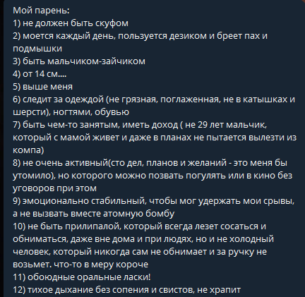 я сам душнила, мне вторую душнилу не надо, для меня идеал 18+ девка наивная которая будет радоваться от подарков любить и радоваться без аналитики и ебатории