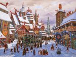 Удивительно что крестьянин снизу справа везёт товар не на телеге а на каких-то салазках без колёс. Ну и угадайте что это за красные плоды в корзине рядом с зелёным горохом.