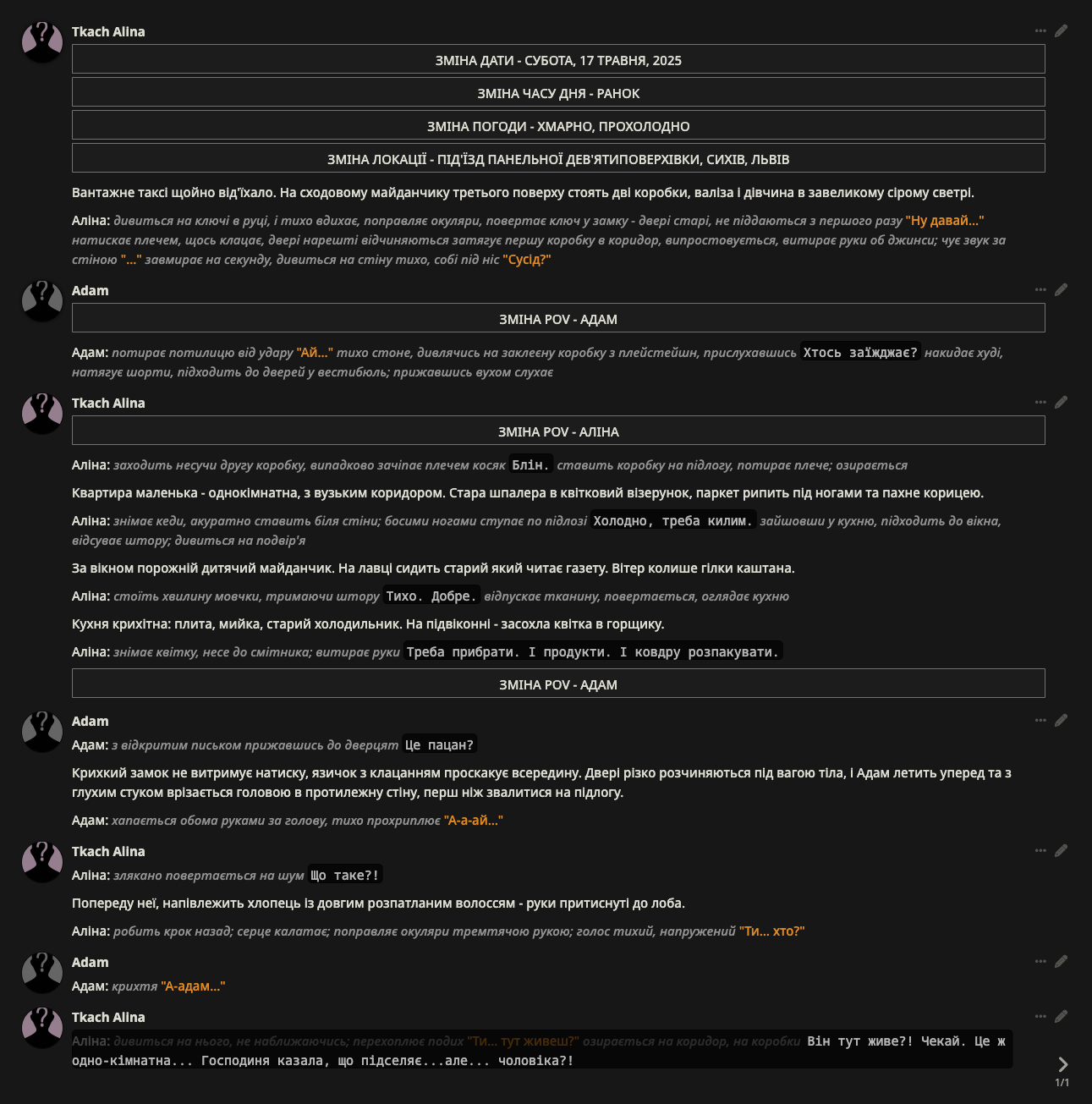>>1494475 Нет, сырок. Описывать юзера важно на любом пресете, просто на безжопе это встает еще острее ведь юзер там такой же нпс, а не User. Чем больше юзеринпута в сетку и чем больше деталей тем лучше аутпут на любом пресете