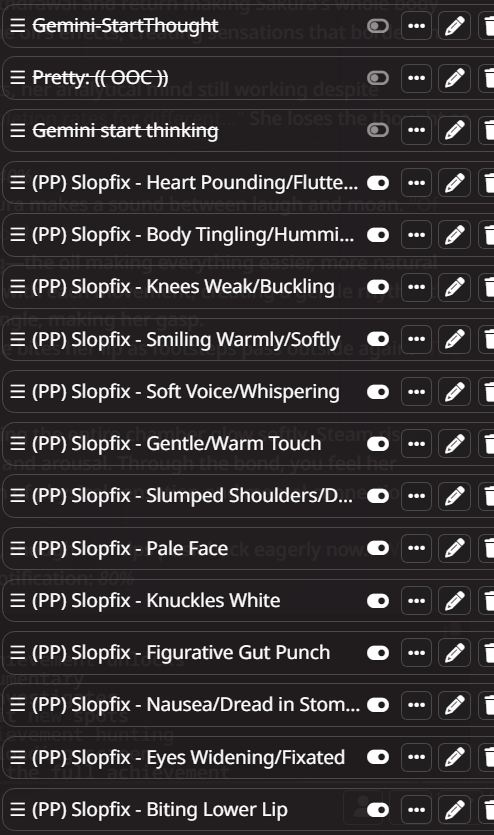 Народ, объясните.. Гемини3 реально настолько плоха? Нет, я щупал её вначале как вышла, там конечно были проблемы но сейчас что то совсем жесть. Намного тупее 2.5 по ощущению и логике сцен, без постоянных ООС пинков рпшить невозможно, тайтлит транзишнами (именно даёт название) каждое сообщение, я уж не говорю про то что характеры она вообще плохо понимает.