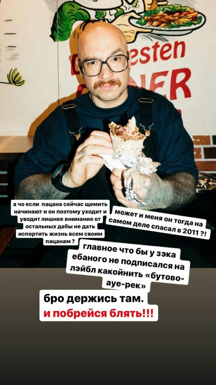 у нас на www.golod.store счётчик затупил и принял больше заказов чем оставалось свитшотов. мы не планировали шить дополнительные. всегда один дроп с ограниченным количеством. потом следующий итд. но тут по ситуации придётся сделать исключение. все, кто заказал получат свои свитшоты. мы пошьём их ещё раз. ️ я не активен потому что отдыхаю. прям по-настоящему. рисую, пишу, хожу на спорт, ем шавуху. надо было собраться с мыслями. за это время я успел попиздиться с дружинниками и поорать в наручниках на ментов и в этот же вечер ушатать мудака пнувшего мой велосипед. а ещё я написал 5 новых треков. и приготовил кучу всего крутого. все хорошо, пацаны. ебашим дальше