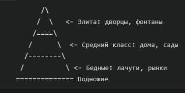 Кастовая система, разделение по кольцам, чем выше тем важнее. Чем выше тем более открытые одежды, на нижнем кольце все ходили в чем-то вроде мусульманских Бурок, а выше больше походило на минойцев.