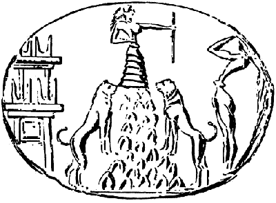 Отпечаток печати-перстня (сама печать не найдена, есть только слепок) Центральаня фигура баба высокого статуса, вероятно правительница или объект поклонения. Огромные сисики торчат наружу.