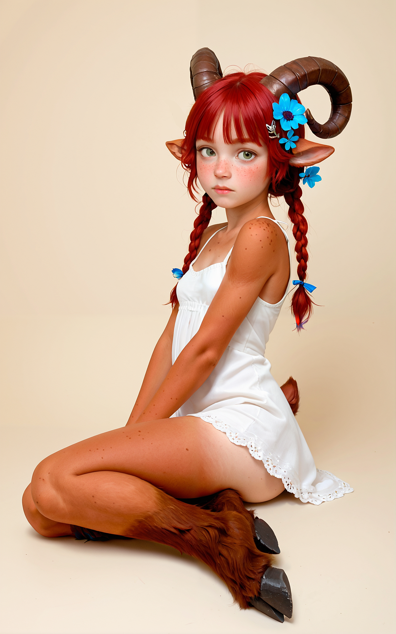 Beautiful face, full lips, (perfect girl body, skinny girl body, petite girl body, tiny girl waist, small perky breasts:1.2), very small black imp horns, spaded black demon tail, ginger hair, even skin tone, small girl, perfect curves, small erect nipples, small areolas,