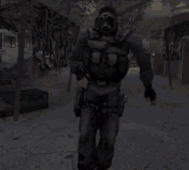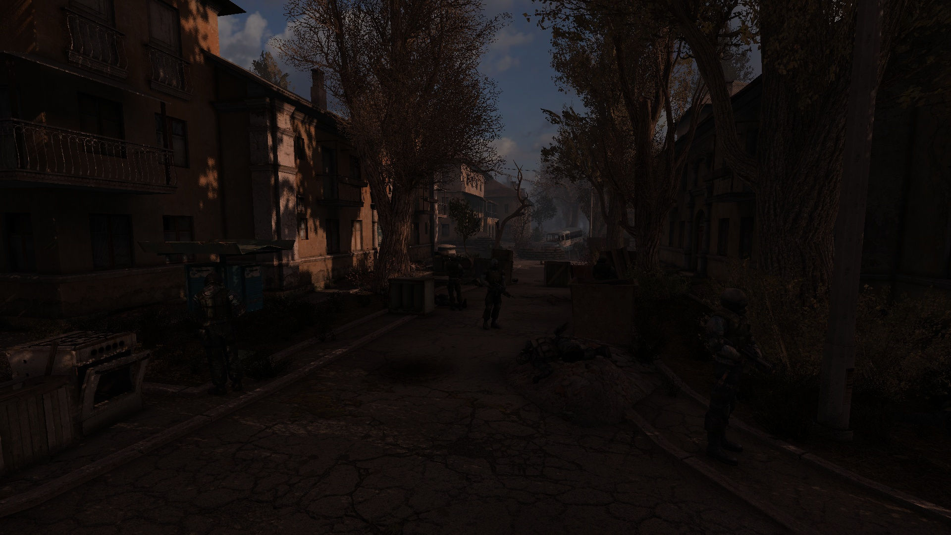 Вояки в 6 ебальников куда-то решили выдвинуться. Стреляться с ними не было смысла - вместо укрытий лишь стволы деревьев. Подождал пока они все перейдут за ворота