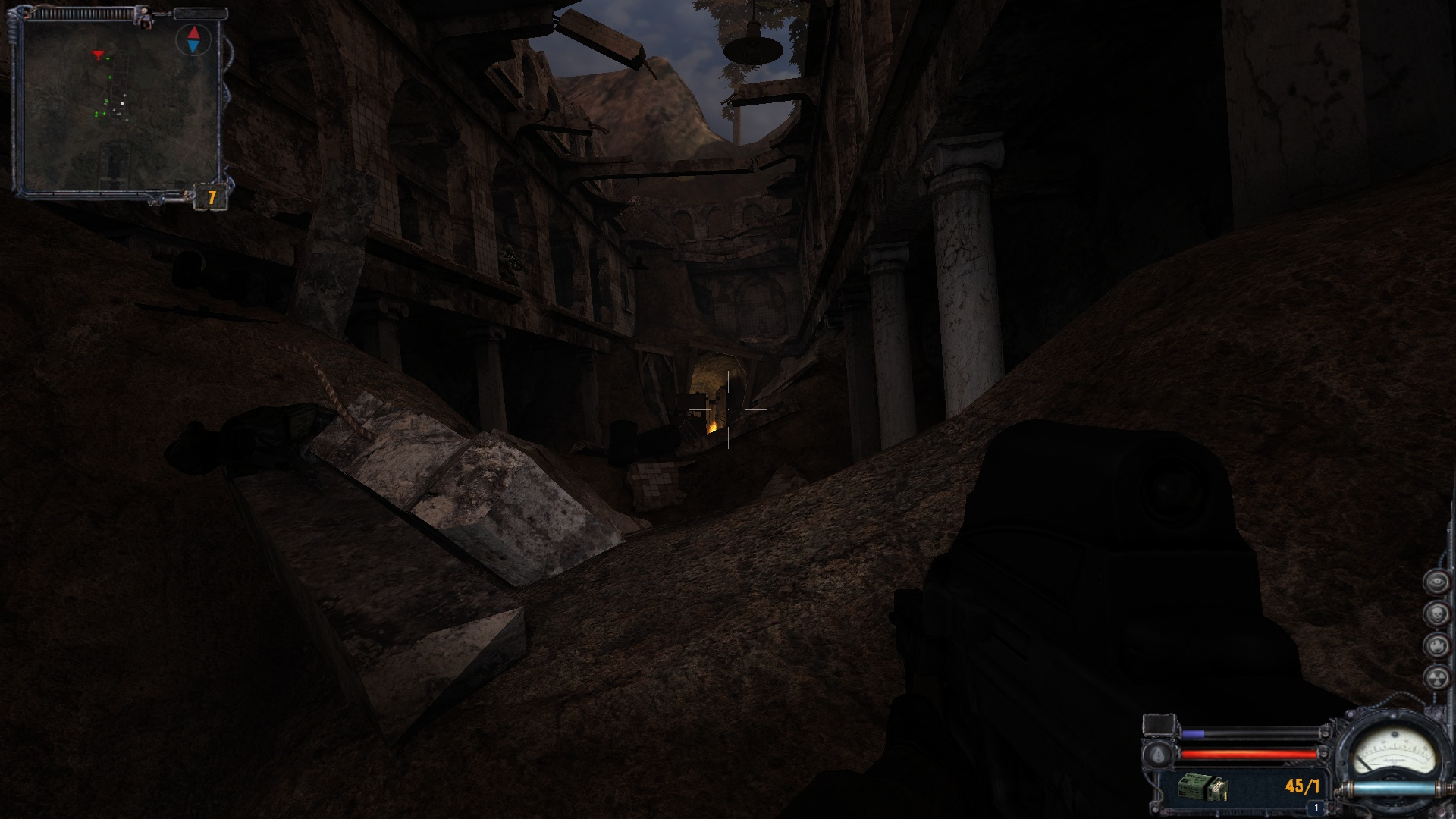 Продолжил на том же месте, где и остановился. Пошел с Болот на Агропром через северный выход, где надо было почистить отряд ренегатов. И заодно снял, как изменяет освещение вспышка выстрела.