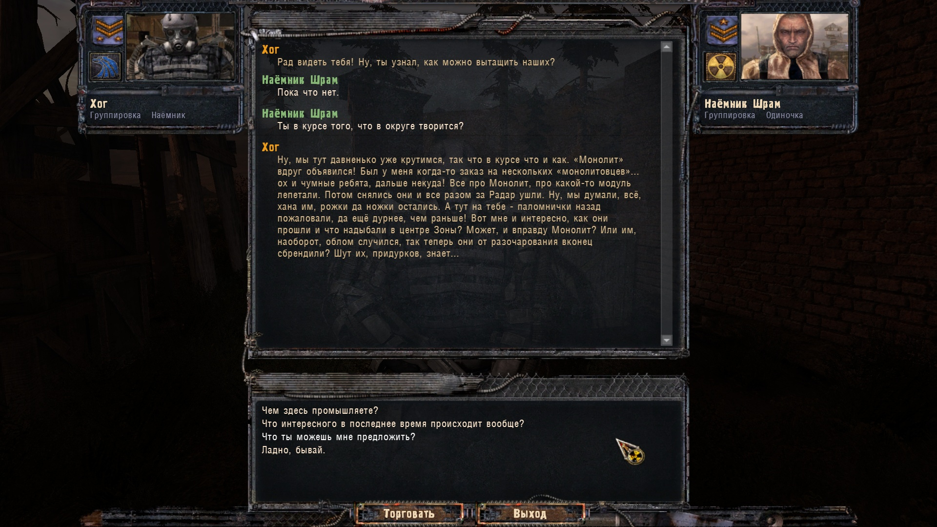 Скайримобляди в этом плане более наглые, как жидок Тодд с американской хуцпой, ёптыть. Наши люди помягче. Все хотят нормальный сталкер - все работают на общее дело.
