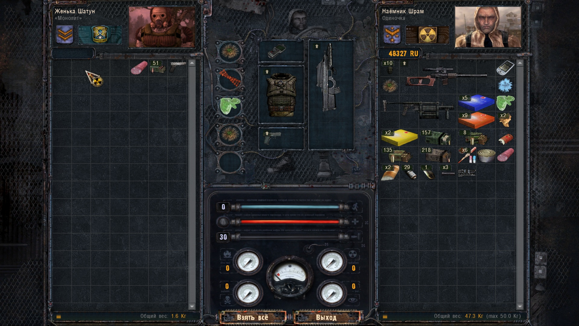 Несколько часов перекладывал костюмы с Болота на Кордон, но оказывается они никому не нужны, хотя я в начале игры продавал такие.