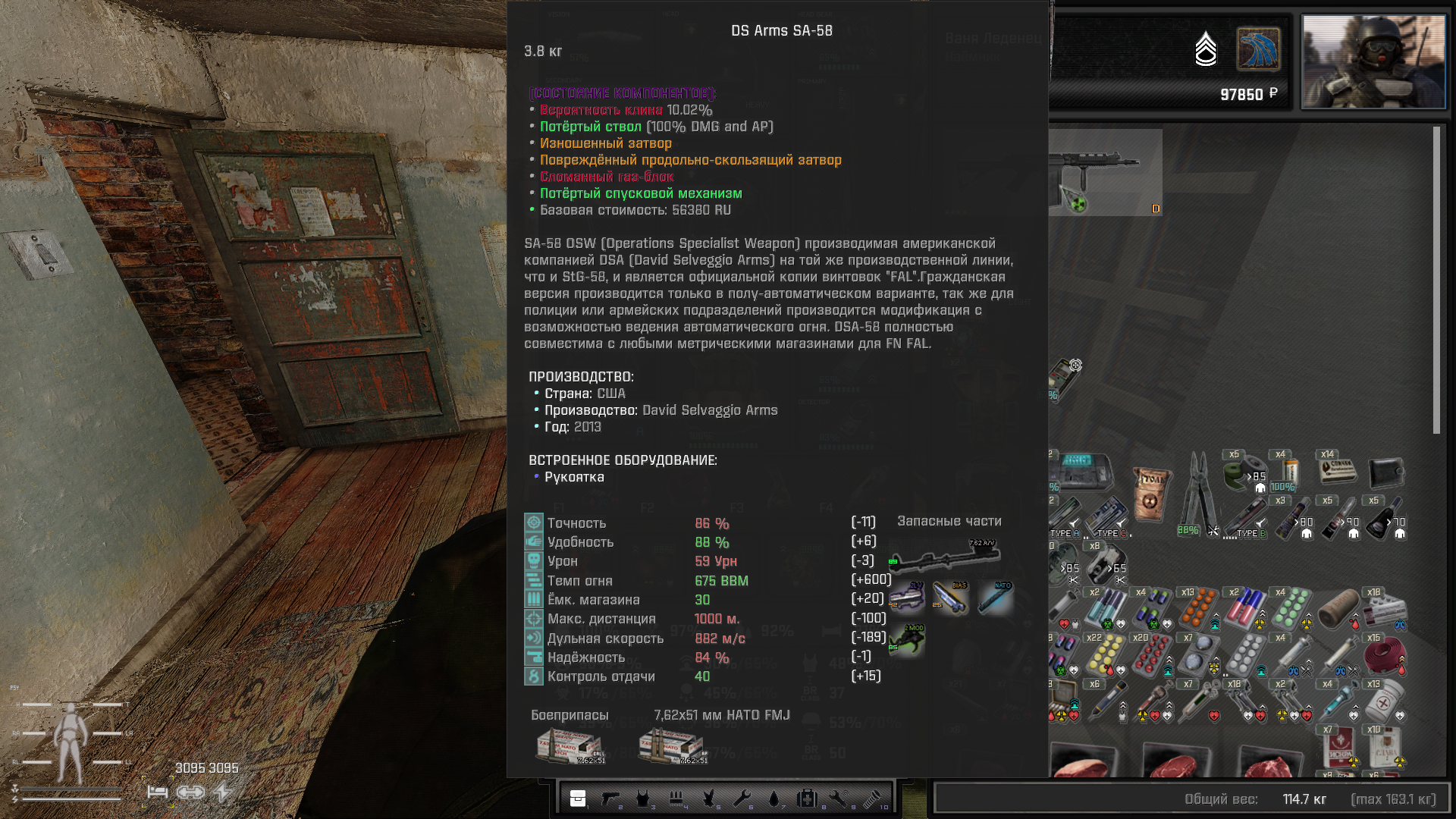 >>50714113 Пока остальные отсиживаются, лезу в дырочку и встречаю бiсса-вертолiта. ХЗ, но нахваленный РГ-6 не попадал по нему ни с каким навесом, так что просто заковырял его из Винтаря.