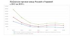 Вот тебе график торгового обмена РФ и Украины. Как видишь ассоциация хохлов с ЕС существенно снизила торговлю