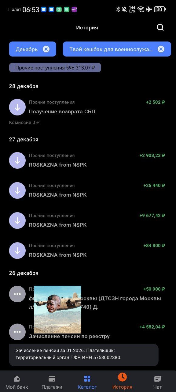 >>329013131 Вот с ПСБ скрин, зп приходит такими кусками + видно пенсию по ветеранке(4582). Ну и общую сумму за декабрь(приходит сразу зп за декабрь и январь) >>329012788 мимо я