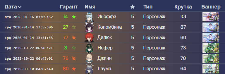 ✦ Гача-калькулятор https://hutaobot.moe/tools/gachacalc ✦ Показать персонажей картинкой https://akasha.cv/ ∙ https://enka.network/