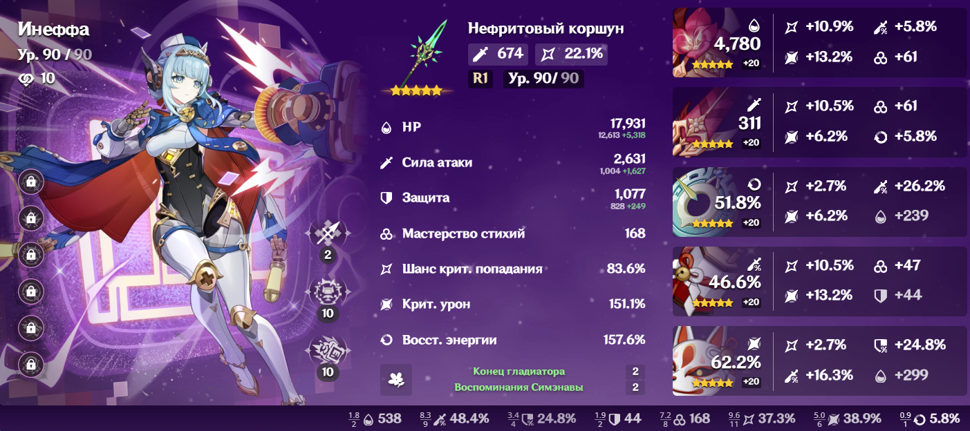 >>6263043 Попробуй поставить Айно вместо Фурины на второго, так-то у Инеффы прилично дамага спрятано именно за лунном бонусом. К тому же, с лунным бонусом на макс щит разлетается за пару тычек.
