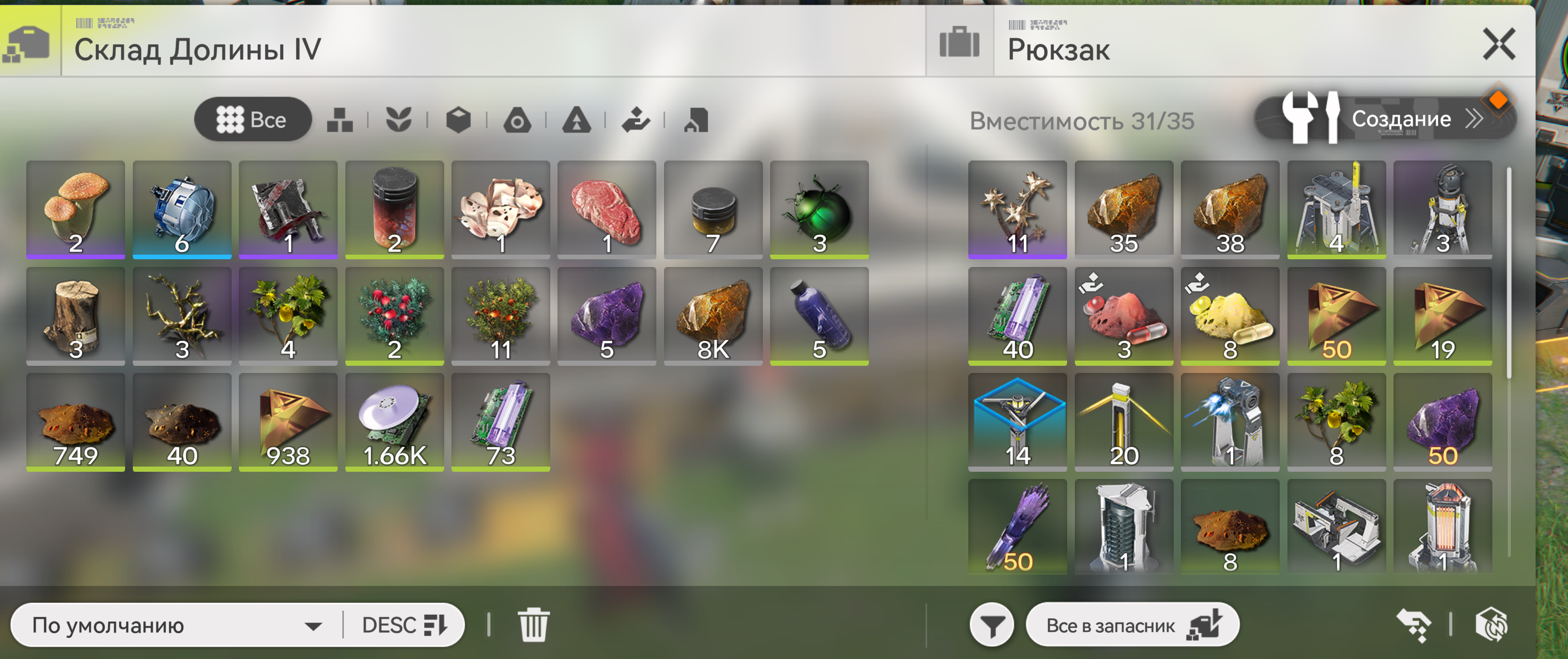 А где склад скрафтить? мне инвентаря этого мало