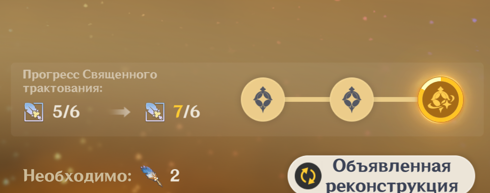 ⚔️ «Хозяин, выкуй мне несколько мечей из твоего лучшего железа!» Искры летят от наковальни, словно звёзды, что прочерчивают ночное небо. «Да выкуй побольше, а то дорога впереди длинная». Сколько раз нужно закалить меч из простого железа, чтобы он послужил рыцарю в бою? ... 🍾 «Давай закопаем эту бочку и разопьём её вместе, когда вернёмся!» Фруктовый аромат окутывает винокурню, взбирается по виноградным лозам и уносится в далёкие небеса. «Кубок вина, выпитый после славной победы, опьянит даже самого Барбатоса». Сколько вёсен и осеней должно храниться простое вино, чтобы дождаться возвращения рыцаря? ... ✨ «Здесь мы простимся. Если пойду провожать вас дальше, некому будет охранять Мондштадт!» Ветер у городских ворот пел прощальную песню рыцарям, уходящим в поход. «...Дальше нам придётся идти самим». Сколько дорог должен исходить простой смертный, чтобы открыть новую главу своей судьбы?