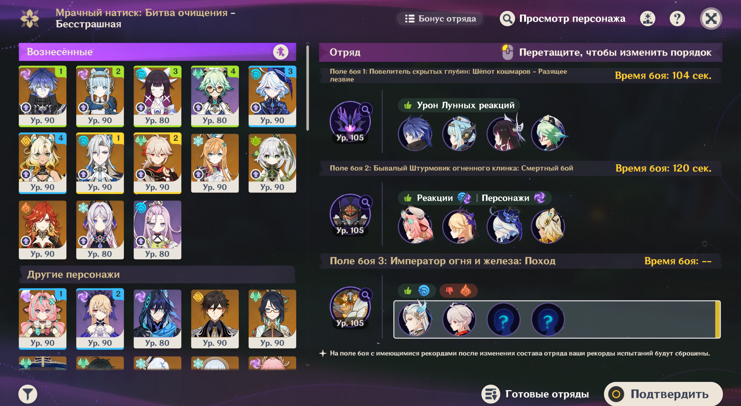 Бля, крутанул пачку Коровка-Дурин-Фишка-Беннет на новом акиче, и теперь вообще крутить никого не охота. Попенворлд-данжики чистятся, в 12 этаж бездны и 4+ натиск заходить не планирую. По вайфуфактору дофига ещё чемпиксов планирую залутать, но как будто кроме театра они мне и не нужны.