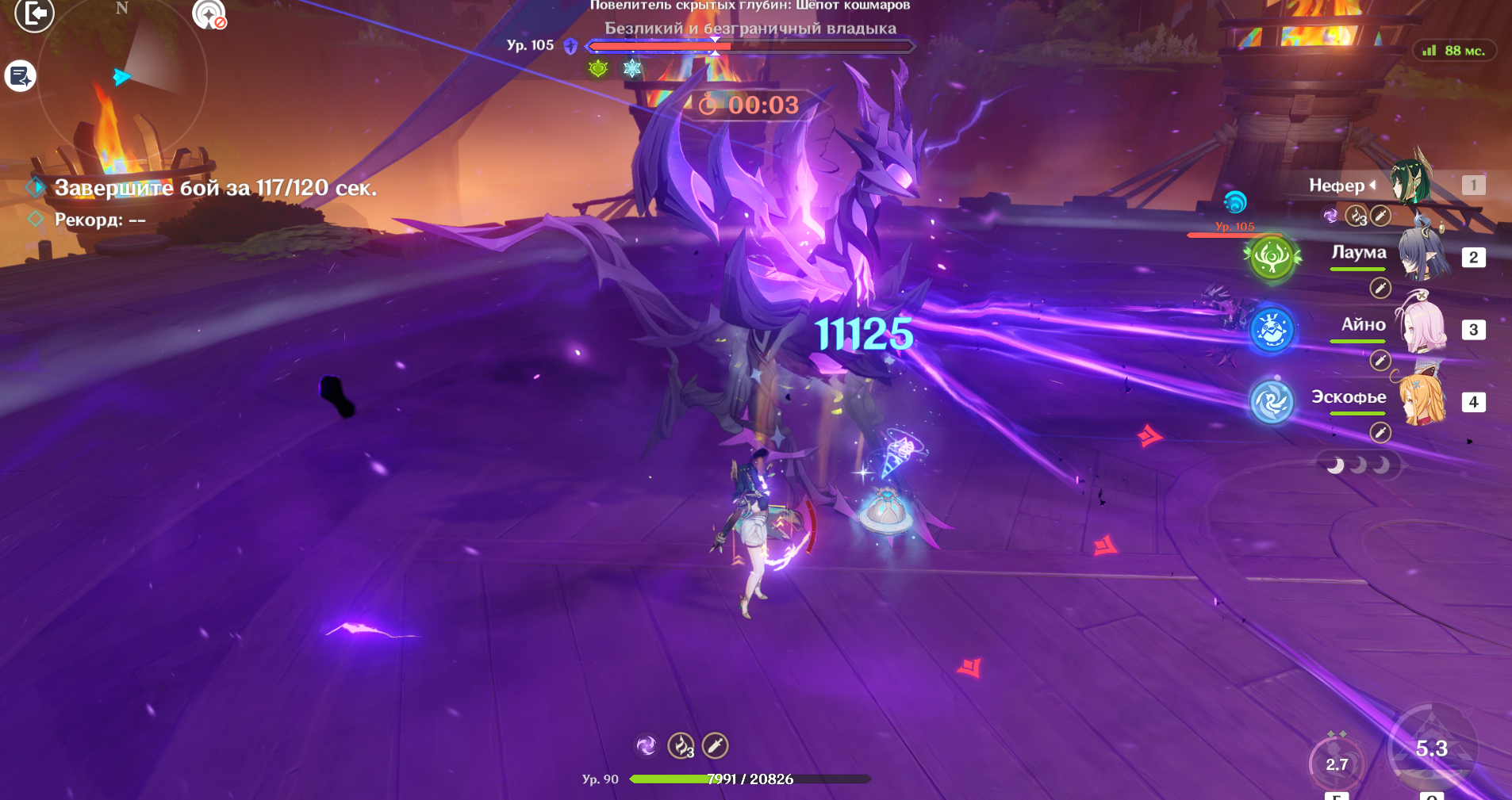 Замутил тут рокировку, Флинс с Айно пытаются штурмовать собаку, Инеффа и прочие бьют Раскольникова. Что тут можно сказать, сам по себе Флинс с Айно без проблем одолели Раскольникова, с собакой все сложнее, щит пробивается, но дальше начинается острая нехватка хилера и щита, тупо ушатывают Флинса, капец, фиг знает хватит ли отхила от янтаря, учитывая, что Сахароза ультует всего раз или два, с энергосом так себе. По таймеру вроде более-менее, если прям напрячь булочки, то шанс осилить есть, особенно если дать элегию Фишль, меньше дамага, зато баффы и энергос дополнительный. Сможет ли Инеффа без Айно осилить Раскольникова - большой вопрос, мне уже пригорело от этих бесконечных ретраев