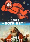Я не защищаю ООО "РПЦ", но христианство повлияло на развитие гуманизма пускай не сразу пускай им прикрывались разные рода садисты и шизы в средние века, как сейчас борьбой с терроризмом борются с пошью блокировки инстаграма и ютюба. Но христианство больше дало чем забрало к людей. Фразой "бога нет" и таким постером СССР сам себя считай поставил в один ряд с маньяками нигилистами и мизантропами.