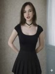 пик 1 промпт: Естественная (живая) фотография на основе изображения-референса, где мужчина заменен на молодую, красивую девушку. Она одета в объемную футболку (оверсайз) и черную плиссированную юбку, фото в полный рост. Она сохраняет ту же позу и выражение лица, что и на оригинальной фотографии. Фон и освещение остаются без изменений.