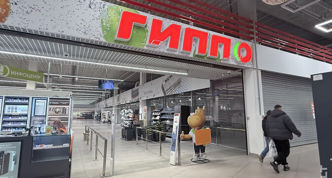 Увечары ў чацвер у гэтым «Гіпа» было зусім мала людзей, а краму, відаць, ужо рыхтавалі да закрыцця: каля ўвахода замест стэлажоў са зніжкамі — шмат вольнай прасторы, у мясным аддзеле пустата, на паліцах таксама заўважна менш тавараў.