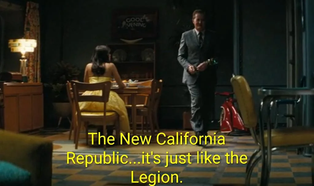 Пока весь сезон состоит из отсылок к Кекасу. Буквально каждая серия, кроме последней, фансервис именно кекаса. Я не знаю что тут несут "Тодд ненавидит Вегас и рушит все" Да хуйня все это, целый сезон буквально про кекас, Тодд его облизывает, а то что Тодд загнал в говно все фракции, отретконил что-то и смешал с говном, так это же блядь Тодд, он всегда так делает, он так умеет, это не со зла