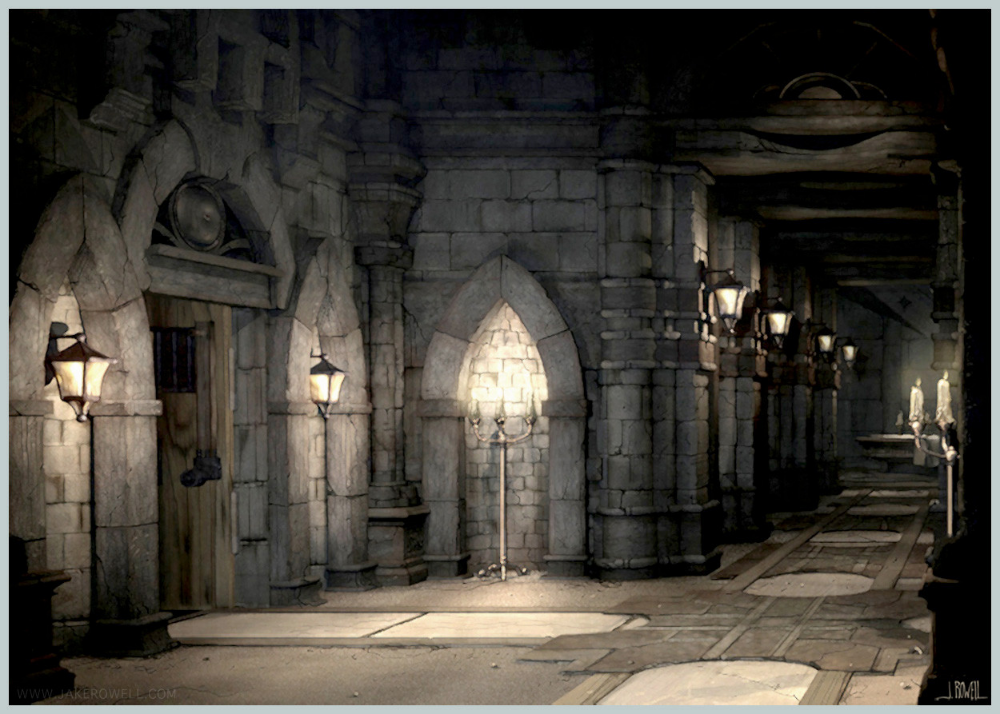 Дверь отворилась плавно, на удивление даже не скрипнула. Аннели, не заприметив ничего непосредственно поблизости, встала перед проёмом и принялась медленно, крайне размеренно продвигаться вперёд, пока глаза её метались из стороны в сторону, оценивая обстановку. Быстро стало ясно: бояться здесь, в радиусе нескольких шагов, нечего. Угроза находилась где-то существенно дальше по коридору, так что девушка вышла вперёд и начала всматриваться уже в относительную даль. Поначалу ничего не заметив, она попыталась отыскать на полу клинок остроухой — но, вне зависимости от успеха, неизбежно повернулась в другую сторону, и там-то уже увидела. Увидела что-то, что не могла до конца осмыслить; зрелище, однако, определённо не самое приятное. Некоторый ужас возник на гримасе Аннели. Эльфийка, по-видимому, заприметила это и решила взглянуть сама, и устроенная в дверном проёме толкучка заставила странницу свалиться вперёд. К счастью, выставленный вперёд меч послужил хорошей опорой и помог избежать падения. К несчастью, это имело последствия — и нет, на сей раз Аннели беспокоилась не о состоянии своего оружия. Нет, шум привлёк внимание. И только пронзительный взгляд охотника сумел уберечь от сильнейшего желания зарядить эльфийке по роже кулаком, а лучше — щитом.