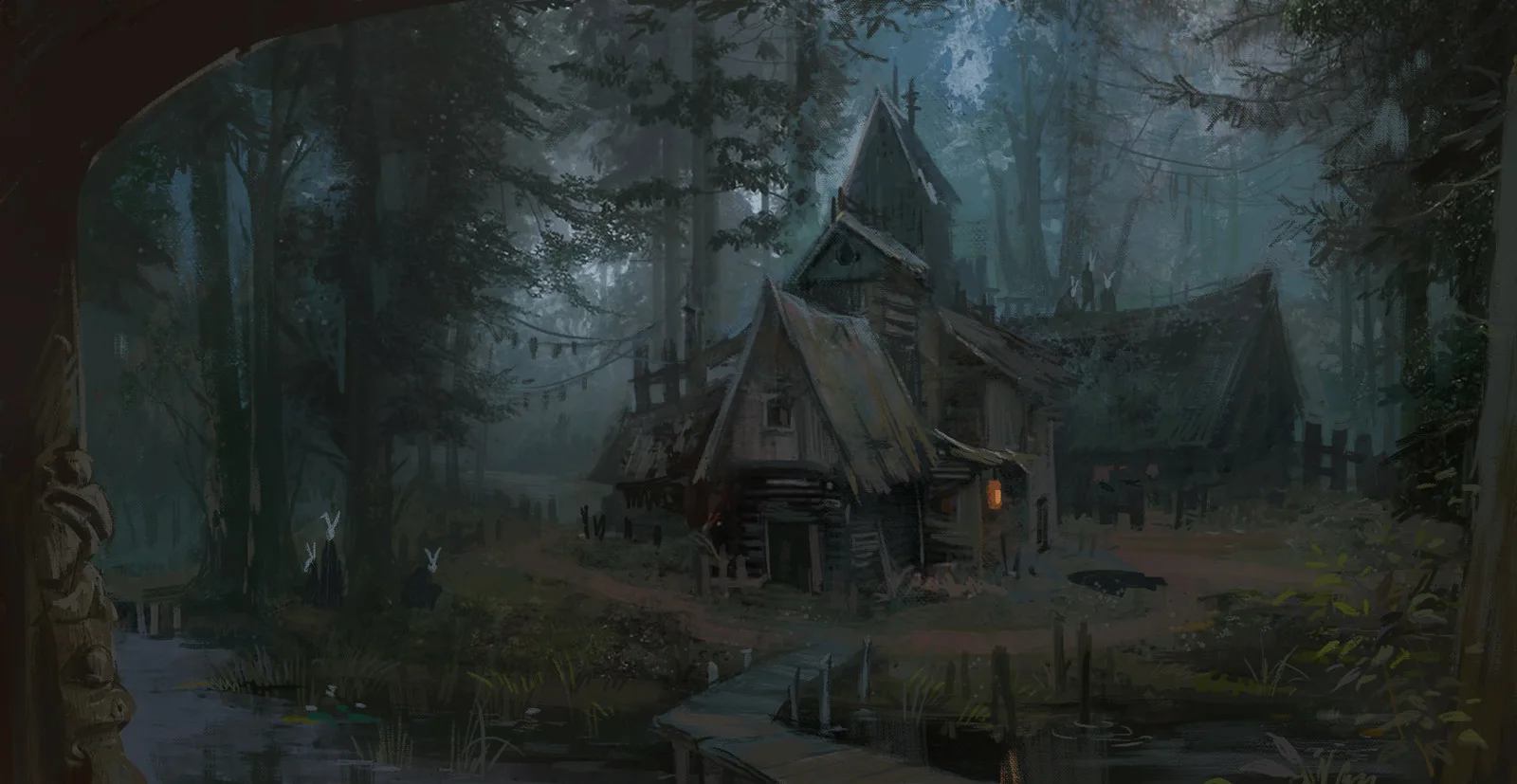 Спустя пару мгновений, когда Эрнест наконец полностью пришёл в себя и отдышался, он ощутил, содрогаясь, как его насквозь, до костей пробрало первородным, чистейшим холодом. Надо было срочно согреться, как-нибудь, пока он окончательно не примерз тут к земле. Он понял, что его отбросило на опушку леса. Редкие корабельные сосны высились над остальным деревьями, словно бы подпирая небо. Кое-где глазу попадались вывороченные с корнями стволы — видимо, буря прихватила с собой и не заметила. Стояла тихая ночь, лес замер, точно закоченелый мертвец, и даже ветер не беспокоил в эту минуту. Лишь грай ворона зазвенел где-то в отдалении, неприятно напоминая Эрнесту, для чего он ввязался во всё это.