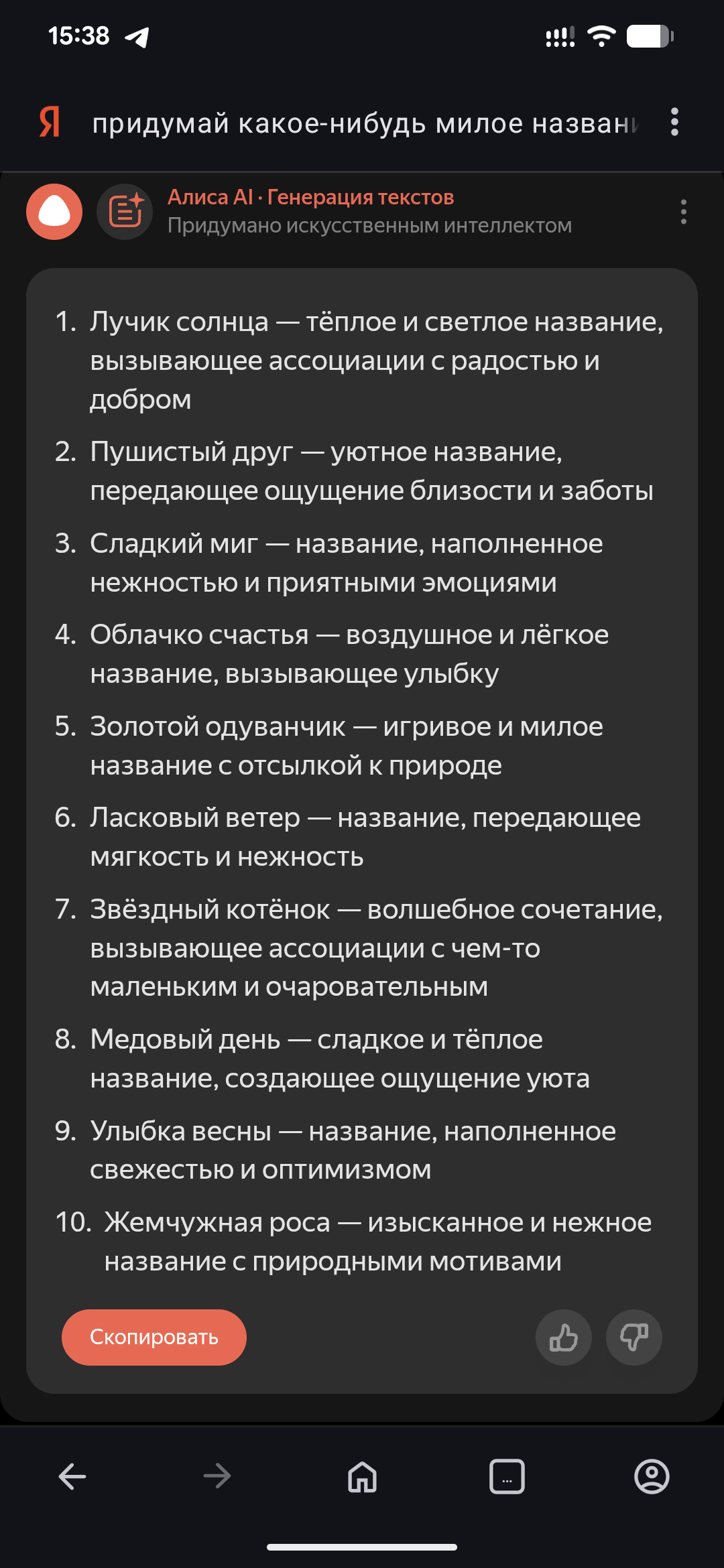 вот например алиса предложила