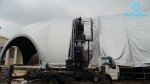 >Так как нужно было создать ледовое поле уникальной формы, был разработан проект с меняющейся длиной радиуса: по внутренней стороне он равен 60-70 м, по наружному достигал 120 м. >Одной из частей шатра стал пункт проката площадью 400 кв. м. На его территории разместили как стеллажи, шкафы, сушилки для коньков, так и лавочки для переобувания. Он рассчитан на одновременное посещение 200 человек.