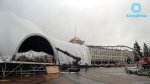 >Главная трудность, с которой столкнулись при проектировании – значительный уклон по горизонту. Если в идеале допускается уклон не более 2 см, то на Соборной площади он составлял около 2 м. Поэтому было принято решение монтировать выравнивающие металлоконструкции. Этим этапом занималась немецкая компания «Лайер», она профессионально выполнила задачу: на участке около 2,5 тыс. кв. м были созданы металлоконструкции, которые выровняли поверхность и стали основанием для катка.