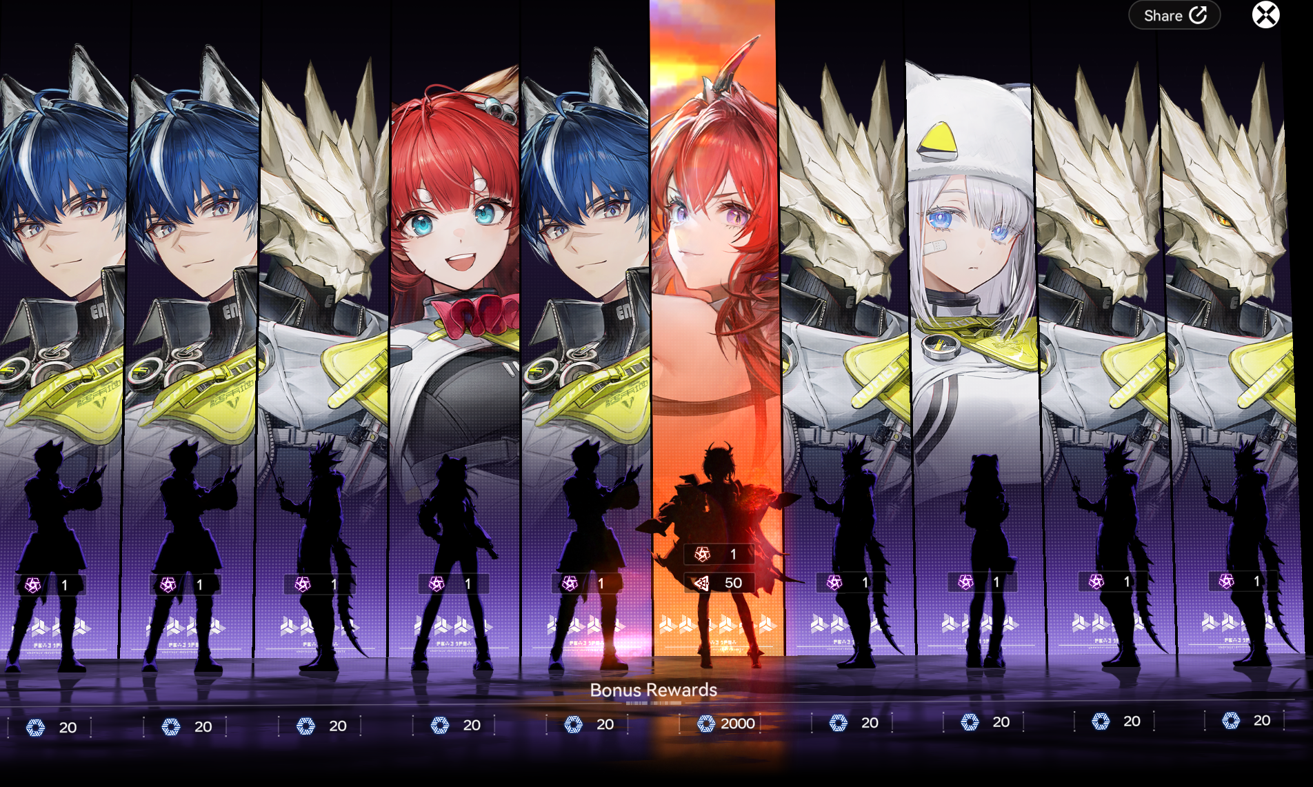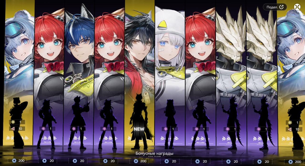 🎰 5. Гача-система Гарант только на 120 крутке, не переносится между баннерами. Все выпадения — 50/50. Уже в первом патче три ивентовых персонажа. На бумаге система выглядит жадной, хотя БП в игре — один из лучших.