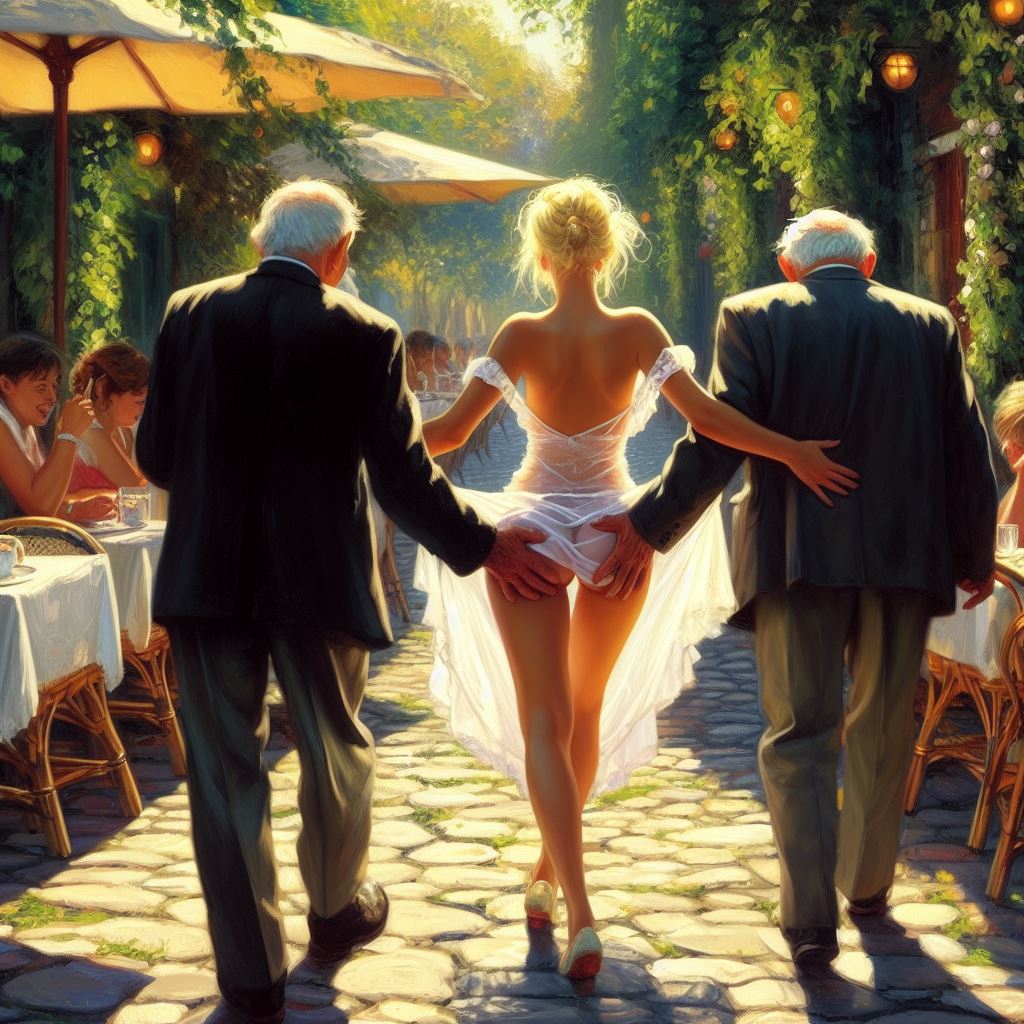 Хочу потом попробовать сделать так, чтобы у центральной девушки были раздвинуты ноги, а другие трогали её пах. И может ещё мужскую руку добавить.