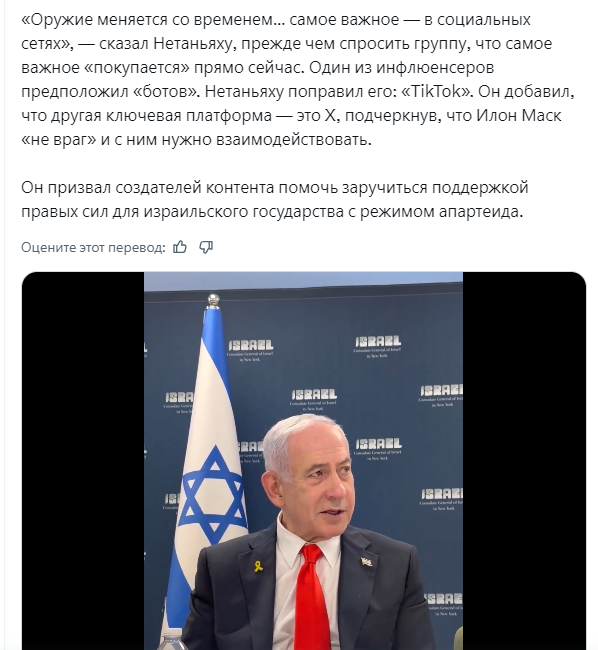 >>329234028 Забавно смотреть как свинья пытается отрицать очевидное, в то время как Нетаньяху прямо заявляет >>329233768 что Тик-ток - это главное оружие Израиля, и его покупка - важнейшее, что сейчас происходит.