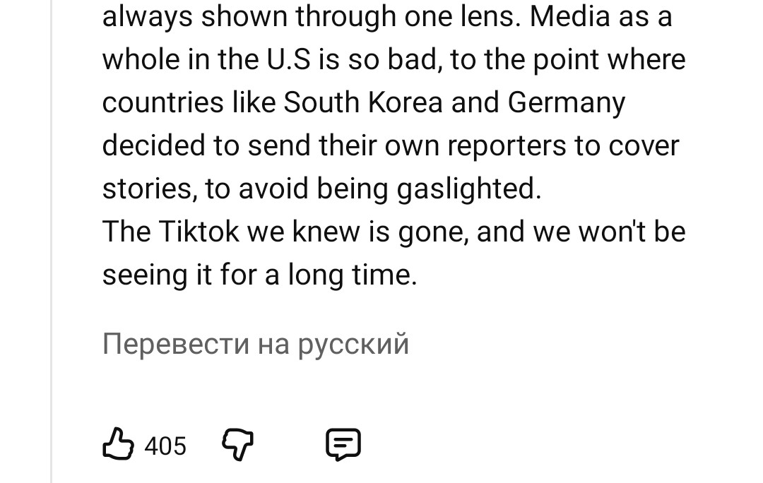 Упс, настоящие американцы пишут, что в тиктоке они получали нецензурированную разностороннюю информацию, а теперь пришла пизда. Ну да, что они понимают, щас анончики с двача расскажут, какая в америке ахуенная свобода слова и прессы, они ж лучше американцев это знают.