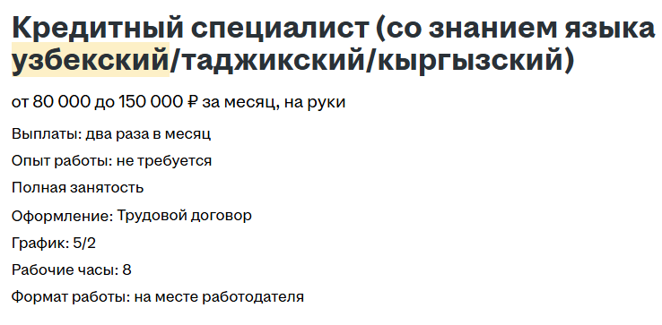 Обратной стороной являются вакансии с рынка услуг. Просто листаю ленту - теперь объявлений с зарплатами ниже 100 000 р. уже и нет. За последний год-два все услышали, что на каких-то мифических складах кто-то получается по 5-12 т.р. за смену.