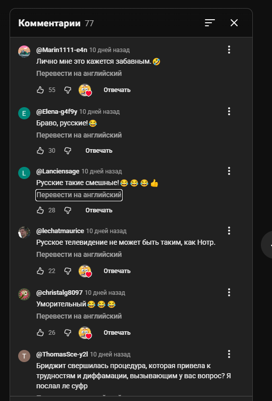 В комментариях французы выразили свой восторг, многие из них отметили, что они все больше любят русских за искрометный юмор и открытость.