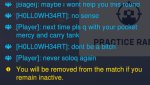 Хочу заметить, что репорты складываются, то есть если ты плохо играешь и бухтишь в чат, то получишь два разных репорта, а так же получишь ещё копию этих репортов, если попадёшься со мной в следующей игре, даже если окажешься в противоположной команде.