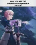 > недосягаемым для большинства сейберов и других слуг которые владеют клинком. Не знаю, насколько это правда. Завтра может выясниться, что Насу высрал новый фанфик (а то даже и не Насу), и там будет сказано, что самый сильный Сэйбер это Гарет, или Астольфо, или еще кто, и это объявят каноном. Ему прикрутят по сюжету какой-то костыль, позволяющий вращать вселенную на хую, и он станет тру Сэйбой.