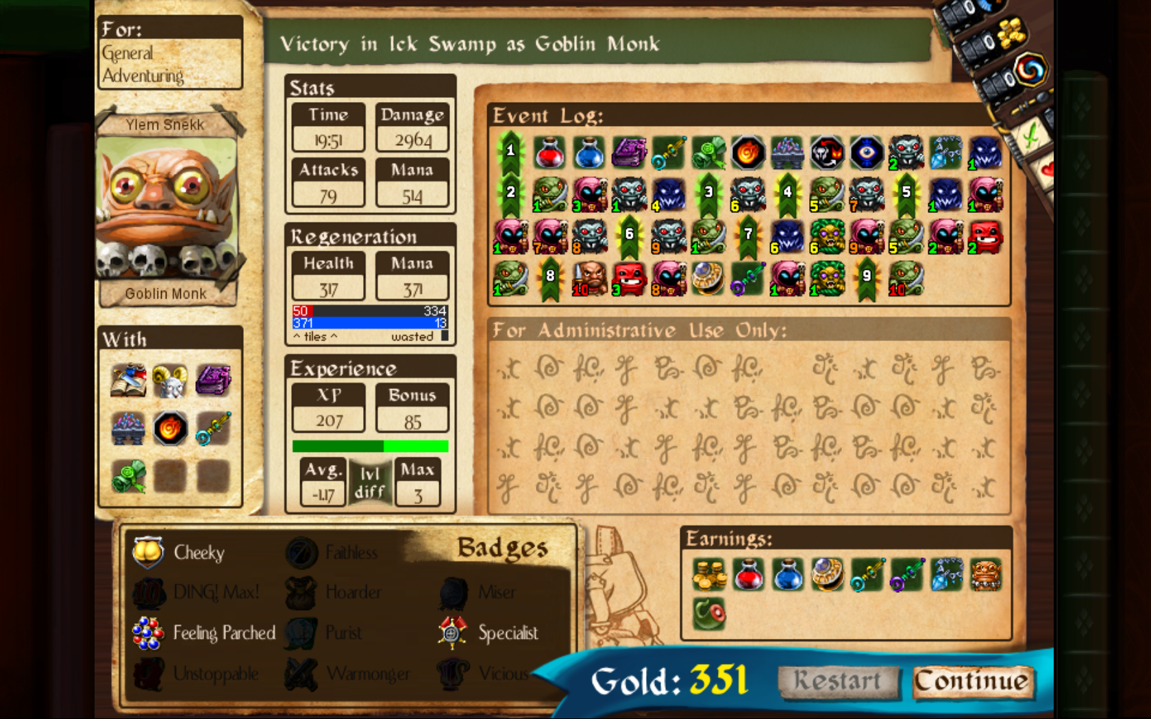Ну и адская победа горгоной в злоебучем болоте, полном мерзких растений, над весьма сильными боссами, да ещё и с маджик резистом - а я не вижу другого способа закрывать данжи монахом/пристом/горгоной, кроме как мистера+аватар кодекс - эта фиолетовая книжица из демонической библиотеки, прибавляет 4 дамага файрболу на левел, максит бёрнинг стак, но все отвечают на файрбол.