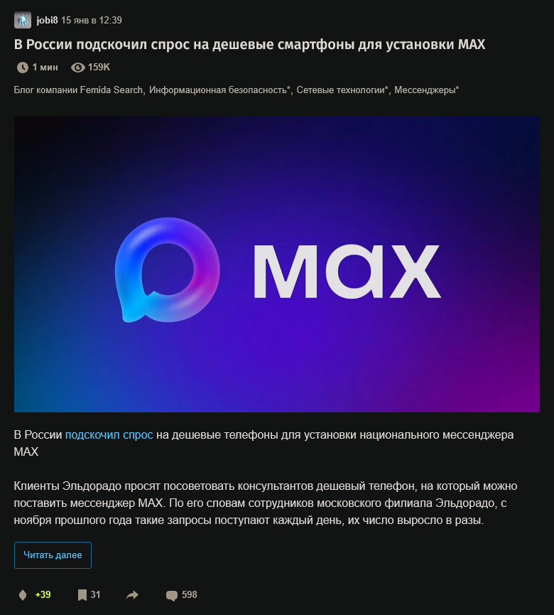 >>329221676 Походу отказ ставить макс это маркер долбоеба для занесения в списки долбоебов. Тебе блять не обязательно им пользоваться, боишься что сольют твои переписки, так не пиши в нем. В чем проблема то копротивляться. Что будет если ты его поставишь? Твой революционный дух попрут, или что?