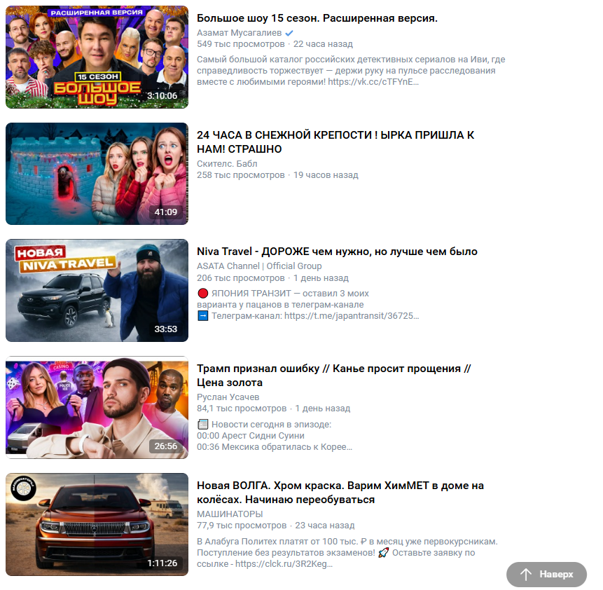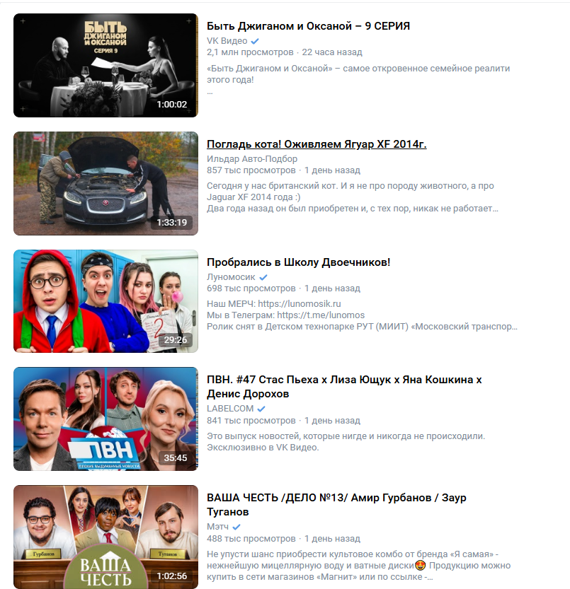 Ну и про рутуб как средство эскапизма - тоже хз. Если зайти как на ютубчик, посмотреть что предложит главная страница (чистый заход, истории на рутубе нет), предлагают вот такое посмотреть. Гоблин, гойда, Саня во Флориде.