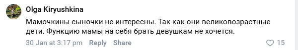 Ты обвиняешь женщин в том, что они "не дают шанса нормальным парням". Но "нормальный парень" — это тот, кто уже прошёл эдипову стадию: отделился от матери, идентифицировался с отцом/взрослым мужским образом и строит равные отношения. Ты же до сих пор в той самой детской стадии — мама кормит, жалеет, не судит. Так почему женщины должны давать шанс такому человеку, который даже свою маму не может отпустить?