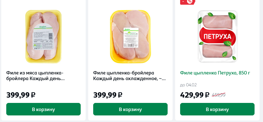 >отказываю себе в куриных грудках и вынужден переключиться на бёдра это хуйня - филе грудки дешевле чем филе бедра, вот я перешел на куриную печень - сейчас это самое оптимальное из мясного, за 230 рублей получаешь килограмм мясоподобного продукта без костей.