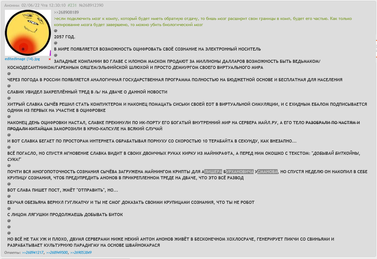 Тут есть иллюзия, что кроме меня, среди сотни ботов, есть еще один живой анон, с тем же чатгпт такой иллюзии уже нет