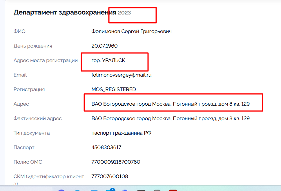 Данные из Росреестра за 2024 год. Указанный здесь адрес находится в Богородском районе, где ему был выдан паспорт, что указывает на то, что он как минимум регулярно его посещает, а, сочетая с ранее полученной информацией о нахождении его симки в 170 км от точки в Рязанской области, мы приходим к выводу о его реальном проживании там. Расстояние от Москвы до Рязани 200 км, Рязань находится в самом центре рязанской области, к слову.